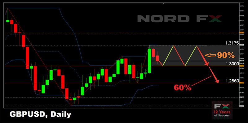 وتجدر الإشارة إلى أنه عند التبديل من التوقعات الأسبوعية إلى التوقعات الشهرية ، تتغير الصورة بشكل جذري ، وهنا بالفعل يتوقع غالبية الخبراء (60٪) والتحليل البياني على D1 أن ينخفض الزوج بدلاً من الارتفاع: أولاً إلى مستوى 1.2860 ثم 100 نقطة أخرى أدناه ؛