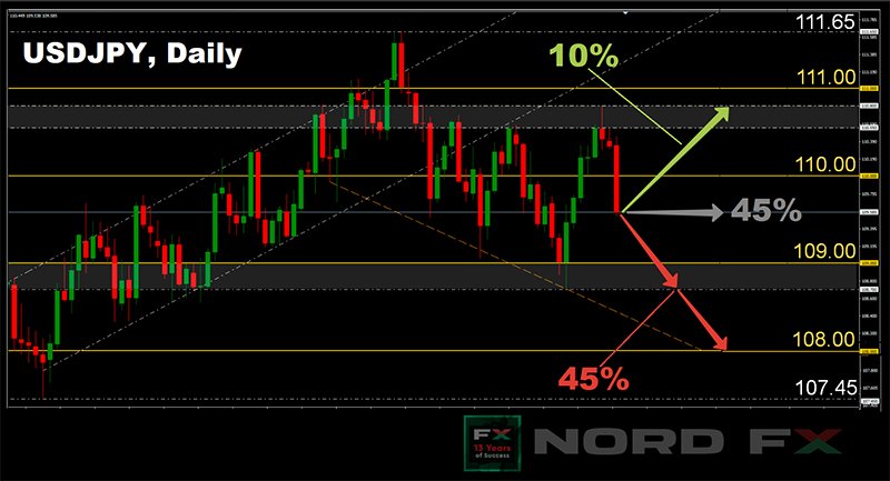 أغلق زوج دولار / ين USD / JPY خمسة أيام دون المستوى الرئيسي 110.00 ، ويقول الخبراء أن هذا لا يبشر بالخير للدولار. (بالطبع يتعلق الأمر بالمدى القريب). وبالتالي ، يصوت 45٪ من المحللين لاستمرار الاتجاه الهبوطي ، ويفضل 45٪ أخرى الاتجاه الجانبي ، ويعتقد 10٪ فقط أن المضاربين على الارتفاع سيكونون قادرين على تحويل الزوج صعودا مرة أخرى.