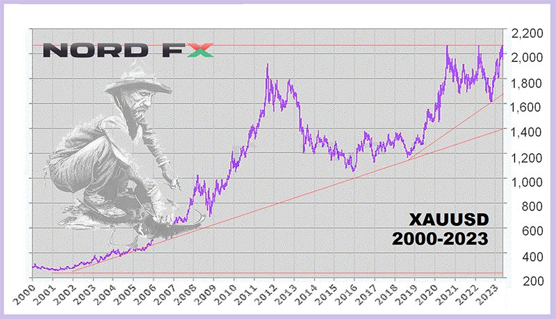 إذا تتبعنا تحركات أسعار الذهب منذ بداية القرن العشرين ، فإننا نلاحظ النمط التالي. في عام 1900 ، كان سعر هذا المعدن الثمين يقارب 20 دولارًا للأونصة.