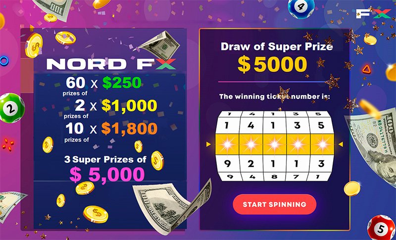 Since 2021, the broker NordFX has been conducting an annual Super Lottery with an impressive prize pool of $100,000. This promotion offers a fantastic opportunity for the company's clients to improve their financial situation by winning one or several substantial cash prizes. Moreover, participation in the lottery was absolutely free! Anyone interested could participate by meeting a few simple conditions.