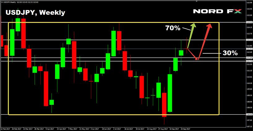 As for the remaining experts, they believe that the pair will not be able to break through a strong medium-term support in 1.3000-1.3045. They believe that the pair will use this support to go into a lateral movement. The resistance levels are 1.3125, 1.3150 and 1.3250. About one-third of the oscillators on H4 and D1 agree with this scenario, signaling that the pair is oversold; - USD/JPY has been moving in the side channel 108.00-114.50 since this spring, and is now on its way to its upper border. About 70% of analysts agree with this point of view, as do graphical analysis on H4 and 90% of trend indicators and oscillators on D1. The nearest resistance is 113.25.
