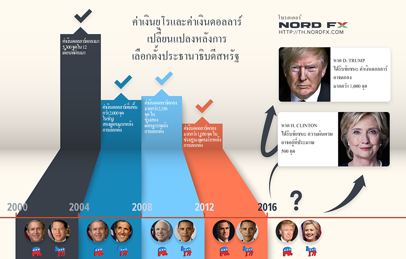 “ที่สำคัญ” นักวิเคราะห์ของ NordFX ย้ำ “ค่าเงินที่เปลี่ยนแปลงรุนแรงเช่นนี้มักเกิดขึ้น ไม่ว่าใครจะชนะการเลือกตั้ง จะเป็นพรรครีพับลิกันหรือพรรคเดโมแครต ผมมั่นใจว่าการเลือกตั้งครั้งนี้ก็จะได้ผลไม่ต่างออกไป เป็นไปได้ว่าแนวโน้มหลังการเลือกตั้งจะคงอยู่ประมาณ 2-3 เดือน เช่นเดียวกับแนวโน้มหลังการเลือกตั้งครั้งก่อนๆ ตราบเท่าที่นักลงทุนยังมองไม่เห็นว่าคำมั่นจากการหาเสียงของประธานาธิบดีคนใหม่จะประสบผลเมื่อใด และคำมั่นใดที่จะยังถูกนำมาปฏิบัติจริง นี่เป็นช่วงเวลาที่เหมาะสมของเหล่านักลงทุนในการหาผลตอบแทนที่ดี