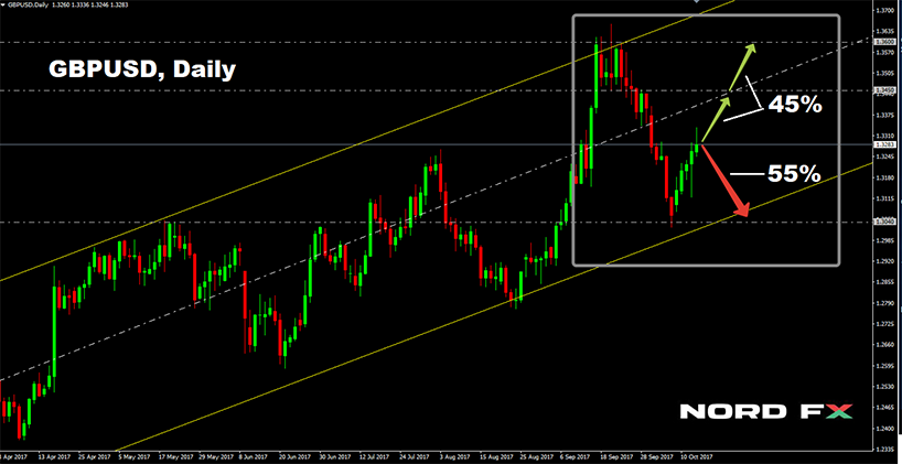 45% chuyên gia còn lại và đa số (85%) các chỉ số tin rằng xu hướng của tuần trước sẽ tiếp tục, và cặp này sẽ tăng ít nhất lên mức kháng cự 1.3450. Vùng kháng cự tiếp theo là 1.3600. Tuy nhiên, trong trường hợp này vào đầu tuần có thể có một sự điều chỉnh giảm nhất định, vì một phần tư các dao động đã có trong vùng quá mua;