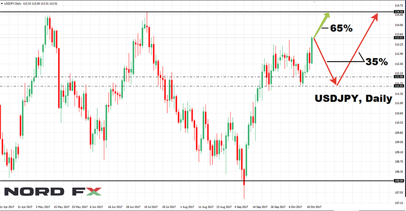 Đối với bulls (tăng), chúng được hỗ trợ bởi 45% chuyên gia còn lại, theo đó cặp này có thể một lần nữa đạt mức cực đại vào tháng 10 trong vùng 1.3335; - Giống như tuần trước, USD / JPY lại một lần nữa đối mặt với một ánh sáng xanh. 65% các nhà phân tích, 100% các chỉ số xu hướng và 75% các oscillators trên H4 và D1 tin rằng sự tăng trưởng của cặp tiền này đến đường biên trên của kênh trung hạn là 108.00-114.50 sẽ tiếp tục. Tuy nhiên, chúng ta không thể quên rằng những điều chỉnh nhất định có thể xảy ra dọc theo con đường này. 25% các oscillators tín hiệu cho rằng cặp này là mua quá nhiều. Và, như thực tế cho thấy, các tín hiệu như vậy thường đủ để làm cho cặp tiền đi xuống trong một thời gian ngắn. Hỗ trợ gần nhất ở vùng lân cận 112.00-112.30, điểm tiếp theo là 111.65;
