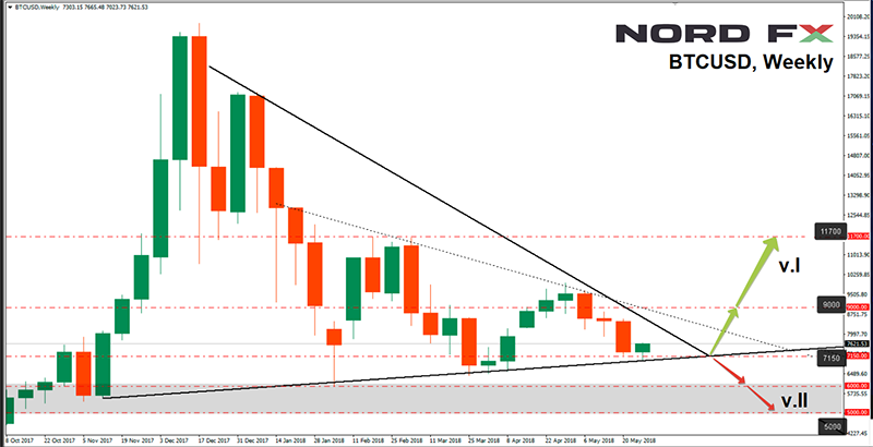 Trong trường hợp hồi phục trở lên, người ta có thể mong đợi bitcoin di chuyển đến đỉnh cao là 11.700. Sự khởi đầu cho điều này sẽ là sự trở lại của cặp BTC/USD đến vùng trên 9.000. Trong trường hợp tiêu cực, chúng ta sẽ sớm thấy bitcoin trong vùng 5.000-6.000. Trong tuần tới, nhiều khả năng, bitcoin sẽ kiểm tra hỗ trợ trong vùng 7.025-7.200.