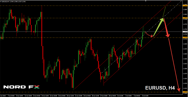Chính phủ Anh có thể tạo áp lực với bảng Anh. Trong tương lai gần, chính phủ Anh phải đệ trình bản thảo thỏa thuận về Brexit cho EU, và nếu nó không chứa bất kỳ khía cạnh quan trọng nào đối với nền kinh tế của đất nước, đồng bảng Anh lại có thể bị áp lực nghiêm trọng; - USD/JPY. Cuộc chiến thương mại giữa Hoa Kỳ và Trung Quốc lại một lần nữa. Vào ngày 6 tháng 7, thuế nhập khẩu hàng hóa Trung Quốc lên tới 25% có hiệu lực. Washington dự kiến sẽ tăng các biện pháp trừng phạt thêm 200 tỷ USD, mà Trung Quốc đe dọa sẽ trả lời bằng cách bán chứng khoán kho bạc của Mỹ.