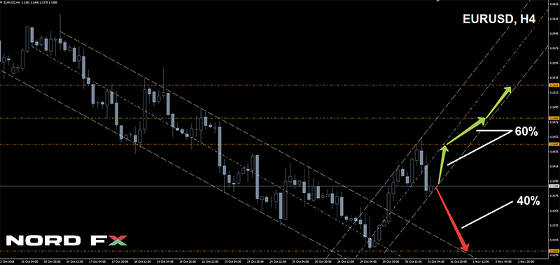 Niềm vui của đà tăng ngắn ngủi. Thị trường đã gặp tháng 11 với sự khao khát ngày càng tăng đối với các khoản đầu tư mạo hiểm, được bổ sung bởi tin tức về sự tiến bộ trong các cuộc đàm phán Brexit. Kết quả là, cặp đôi đã bay lên đến mức cao 1.1455, sau đó các nhà giao dịch đã sững sờ với dự đoán dữ liệu về thị trường lao động Mỹ, như chúng tôi dự đoán, phần nào đã làm mạnh thêm đồng đô la. Như vậy, số lượng việc làm mới được tạo ra ngoài ngành nông nghiệp (NFP) tăng hơn gấp đôi (từ 118K lên 250K), cho phép đồng đô la giành lại 65 điểm. Kết quả là, cặp đôi đã hoàn thành tuần ở cùng một nơi bắt đầu, trong khu vực 1.1390; - GBP / USD. Theo các chuyên gia dự kiến, đồng bảng Anh giảm trong nửa đầu tuần, cố gắng đạt mức thấp nhất trong năm 2018, 1.2660. Tuy nhiên, sự bắt đầu của tháng mười một cũng đang chuyển sang cặp này. Trên nền tảng của tin tức về việc ký kết một thỏa thuận sớm với EU về Brexit, đồng bảng Anh cho thấy một sự tăng trưởng ấn tượng, tăng vọt 340 điểm. Cặp đôi đã kết thúc tuần ở mức 1.2960, trong khu vực có thể được định nghĩa theo điều kiện là Điểm Pivot trong ba tháng qua;