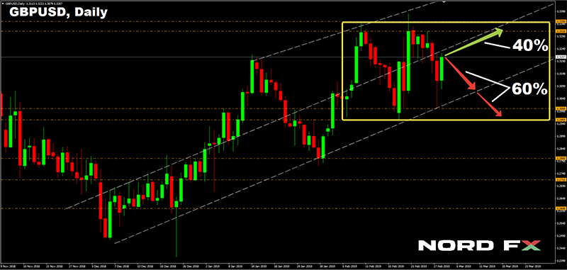Đối với các sự kiện trong tuần tới, chúng ta có thể lưu ý bài phát biểu của Trưởng phòng ECB Mario Draghi vào thứ Tư, ngày 27 tháng 3, cũng như việc công bố chỉ số giá tiêu dùng của Đức và dữ liệu hàng năm về GDP của Hoa Kỳ vào Thứ Năm, 28 tháng Ba. , theo dự báo, giá trị thực của GDP có thể thấp hơn 0,2% so với trước đó. - GBP / USD. Thủ tướng Theresa May yêu cầu Liên minh châu Âu trì hoãn việc Anh rời khỏi EU cho đến ngày 30 tháng 6 năm 2019. Tuy nhiên, EU đã nói rằng sự chậm trễ này sẽ kéo dài hơn. Việc Brexit diễn ra trong một thời gian ngắn như vậy là một lựa chọn rất không mong muốn, vì nó chỉ đơn giản là kéo dài sự mơ hồ, trong đó mọi người đã khá mệt mỏi và liên tục gây áp lực lên bảng Anh.