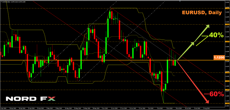 Vì vậy, thị trường mong đợi các bước từ lãnh đạo Hoa Kỳ nhằm ngăn chặn sự suy thoái. Nhưng ECB dự kiến sẽ thực hiện các bước tương tự, vì nền kinh tế Eurozone, bị hủy hoại bởi các cuộc chiến kinh tế và bất ổn chính trị trong EU, cũng không ở trong tình trạng tốt nhất, và sản lượng trái phiếu Đức đã đạt mức thấp kỷ lục. Tuy nhiên, hạ lãi suất cho đồng euro là con dao hai lưỡi. Bằng cách kích thích tăng trưởng công nghiệp, bước này sẽ tạo ra những vấn đề nghiêm trọng cho hệ thống ngân hàng ở châu Âu. Theo các chuyên gia của Bloomberg, việc hạ lãi suất tiền gửi euro xuống -0,5% sẽ làm tăng chi phí của các ngân hàng liên quan đến việc phục vụ lãi suất âm tới 60%.