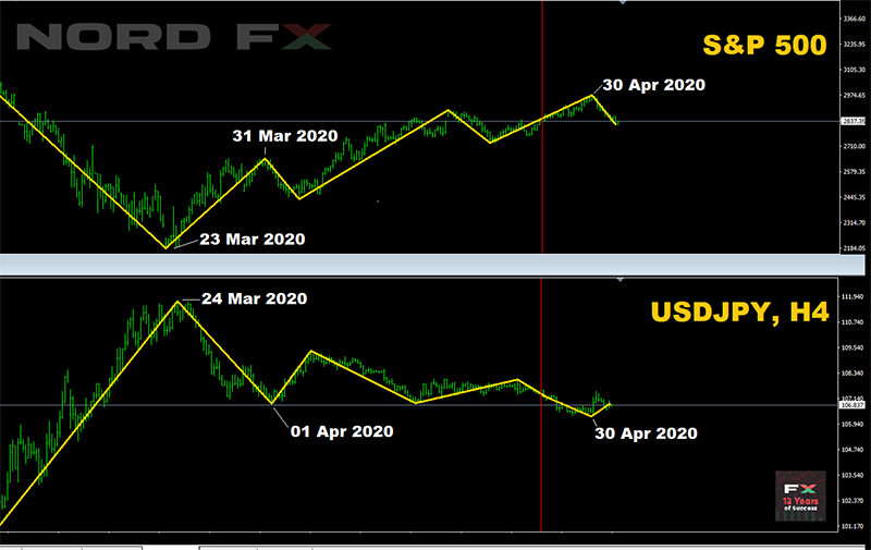 Kết quả là, đã bắt đầu vào thứ Hai từ mức 1.2365, đồng bảng kết thúc vào thứ Sáu trong khu vực hỗ trợ/kháng cự mạnh 1.2500, mất 135 điểm so với đồng Đô la trong tuần; - USD/JPY. Với độ biến động cực cao do đại dịch COVID-19 gây ra, mối tương quan nghịch đảo của cặp tiền này với chỉ số S&P500 và Nikkei225 đặc biệt đáng chú ý trong những tuần gần đây.