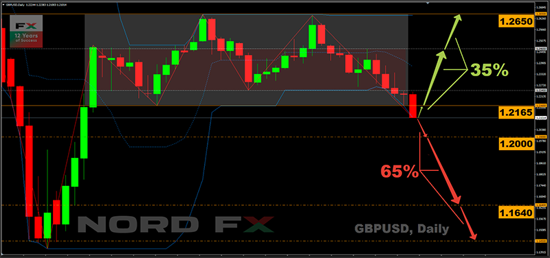Quan điểm ngược lại được chia sẻ bởi 35% các nhà phân tích, 15% các oscillator cho thấy cặp này bị bán quá mức và phân tích đồ thị trên cả hai khung thời gian. Theo ý kiến của họ, sự bứt phá ranh giới dưới của kênh 1.2165-1.2650 là không chính xác, cặp tiền này đầu tiên sẽ quay trở lại khu vực trung tâm của kênh1.2245-1.2465, và sau đó, có thể, tăng lên đến ranh giới trên của nó;