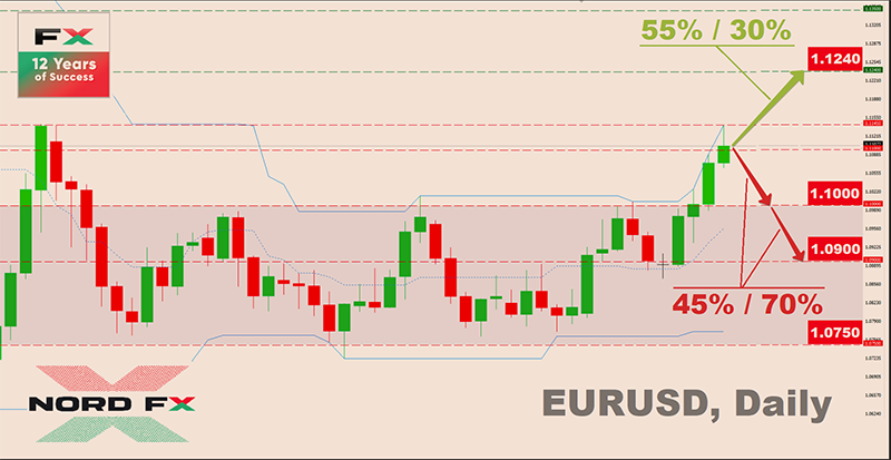 - EUR/USD. Đồng tiền châu Âu đã tăng trưởng cả tuần, ngay cả khi có số liệu thống kê không khả quan về nền kinh tế khu vực đồng Euro. Cặp tiền này đã được hỗ trợ vượt qua giới hạn trên của hành lang 1.0750-1.1000 và tăng lên mức giá cao nhất là 1.1145 bởi tin tức về các biện pháp phục hồi ở EU, bao gồm cả kế hoạch của EU và mở rộng ngân sách một cách nghiêm túc. Ngân hàng Thụy Sĩ, cơ quan mà mua EUR để đổi lấy đồng tiền quốc gia, cũng mang đến sự hỗ trợ cho đồng euro.